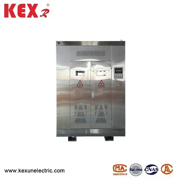 Das Temperaturkontrollsystem für den KSG-Mining-Transformator vom Trockenentyp besteht aus einem Temperaturregler und einem Temperaturmesselement, das am oberen Ende der niedrigen Spannungswicklung installiert ist, was der heißeste Punkt des Produkts ist. 1T realisiert die Temperaturregelung des Transformators und zeigt die Hotspot -Temperatur der Wicklungen A, B und C während des Betriebs des Transformators an. Wenn die Temperatur der Transformatorwicklung aufgrund des Überlastungsbetriebs oder des Fehlers zu hoch ist, gibt der Temperaturcontroller einen Alarm und eine Auslassung aus, und das Temperaturregelsystem hat passive Kontakte für Alarm und Auslassung. Bei der Verwendung von Zwangsluftkühlung bestimmt der Temperaturregler den Eingang oder das Umschalten des Zertifizierungsventilators des Kühlumgebungssystems basierend auf der Wicklungstemperatur. Eine RS485 -Kommunikationsschnittstelle kann auch optional für die Fernverwaltung installiert werden. Das Produktgehäuse verfügt über ein Schutzniveau von P21 oder höher